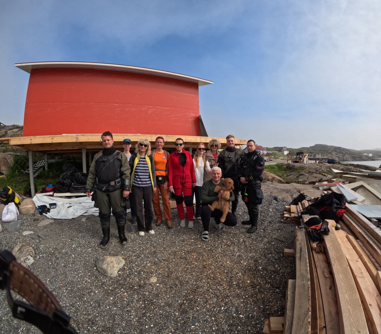 Для начала Кольский подкинул нам испытание грозой и сильным ветром, и это пока мы грузились на лодки для переправы на Немецкий п-ов. Потом 1,5 дня осенних дождей и бинго - жара +25, солнце, почти штиль.